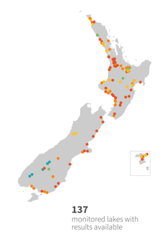LAWA provides information on the health of 137 lakes across New Zealand. Some lakes are monitored at multiple sites, with data from around 200 locations. For the first time, this includes Chatham Islands lakes, along with 20-year trends analyses for some sites.