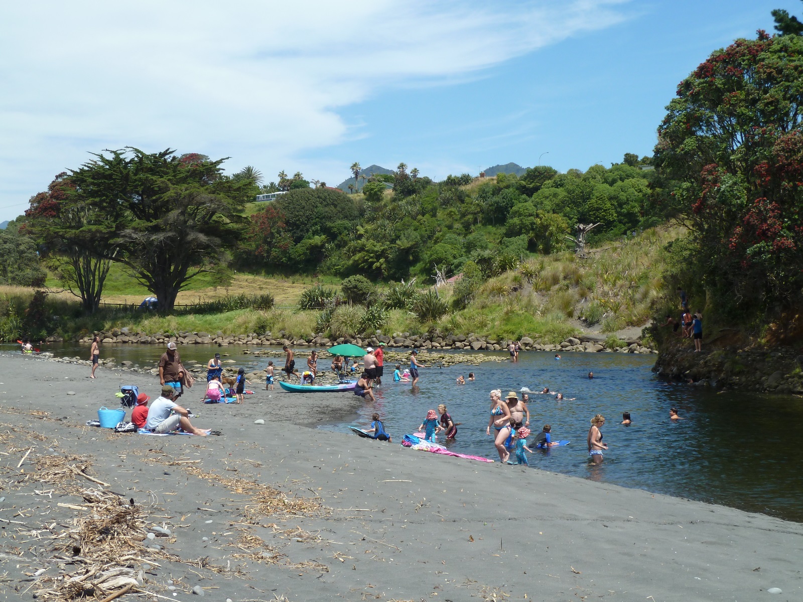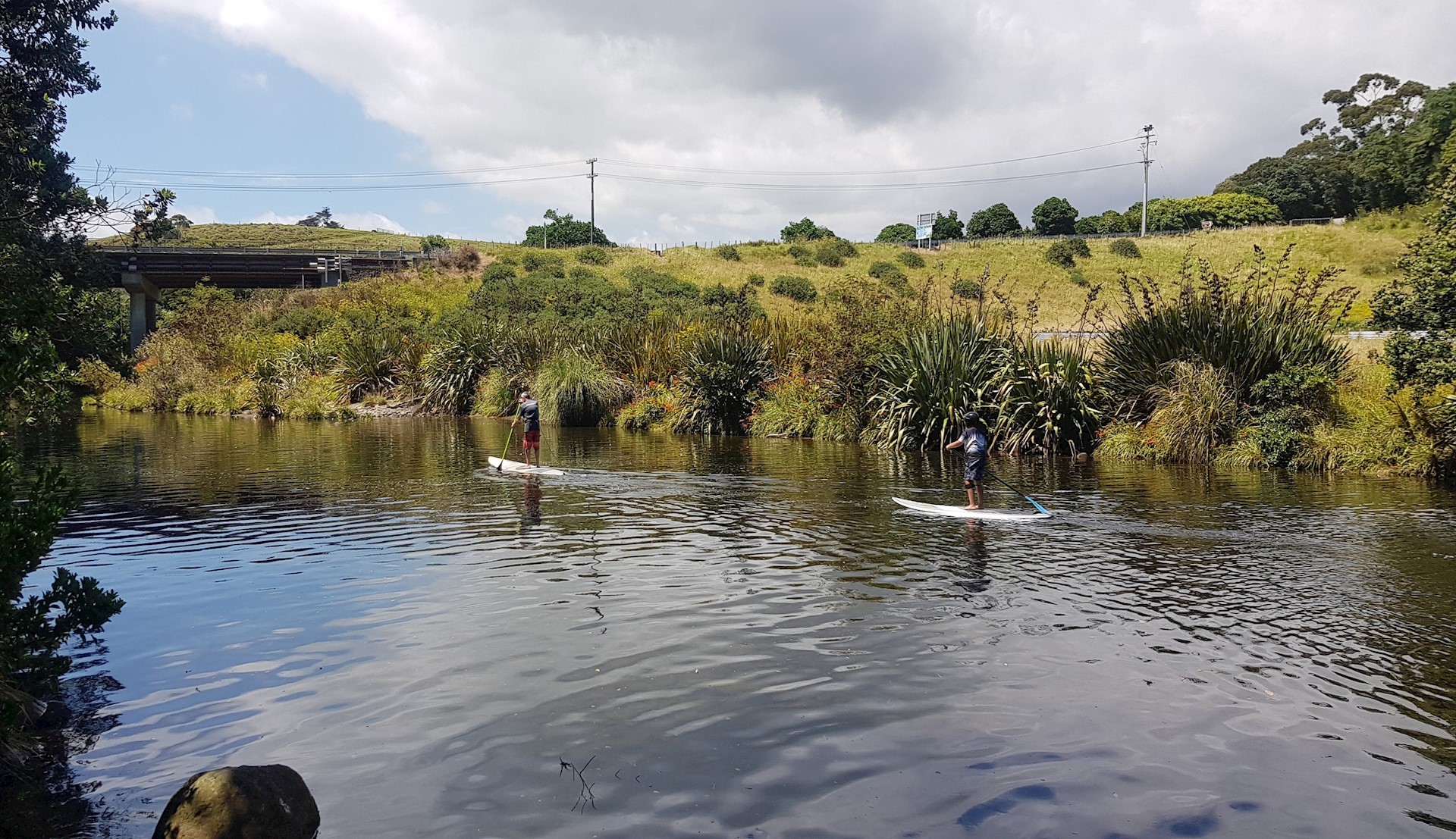 The Ōākuramatapū River drains a catchment with a high proportion of native bush and a smaller area of agricultural land. It originates in the Pouākai Range and is fed by sidestreams from the Kaitake Range. The river flows along the northern side of the Ōākura township and past the historic Ōākura Pā near its mouth, before discharging into the sea.