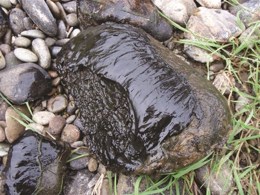 In rivers (and occasionally lakes), toxic algae generally form brown or black mats that grow on rocks in the riverbed (also called benthic). Mats that come loose from the riverbed can wash up on the banks or form floating ‘rafts’ in shallow areas. The mats can also become exposed during low flows. When exposed, the mats may dry out and turn a light brown or white colour and may also produce a strong musty odour. Toxic algae differs from harmless bright green algae, which often form long filaments.