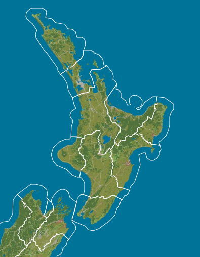 In simple terms, the area values for each land cover class are calculated by interrogating the LCDB version 5.0 maps (reclassified according to either the broad, medium, and detailed class definitions), overlain by regional and catchment boundaries (depending on the land area being considered), at each snapshot date using a Geographic Information System (GIS). For example, if the area being considered is a region, the area of every occurrence of each land cover class within the regional boundary (based on the 2018 regional boundary layer, provided by Statistics NZ) is summed to give the regional total for each class. The GIS analysis also provides the total land area for each region or catchment to enable the land cover class areas to be expressed as a proportion of the total area being considered (e.g. the total land area of a region). A map of the broad land cover classes in the North Island overlain by regional boundaries is shown in Figure 2.